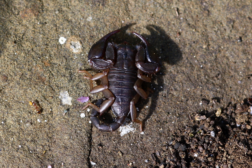 Die bräunlich bis schwarz gefärbten Europäischen Skorpione (Euscorpius ssp.) sind dagegen deutlich kleiner und kaum gefährlich.