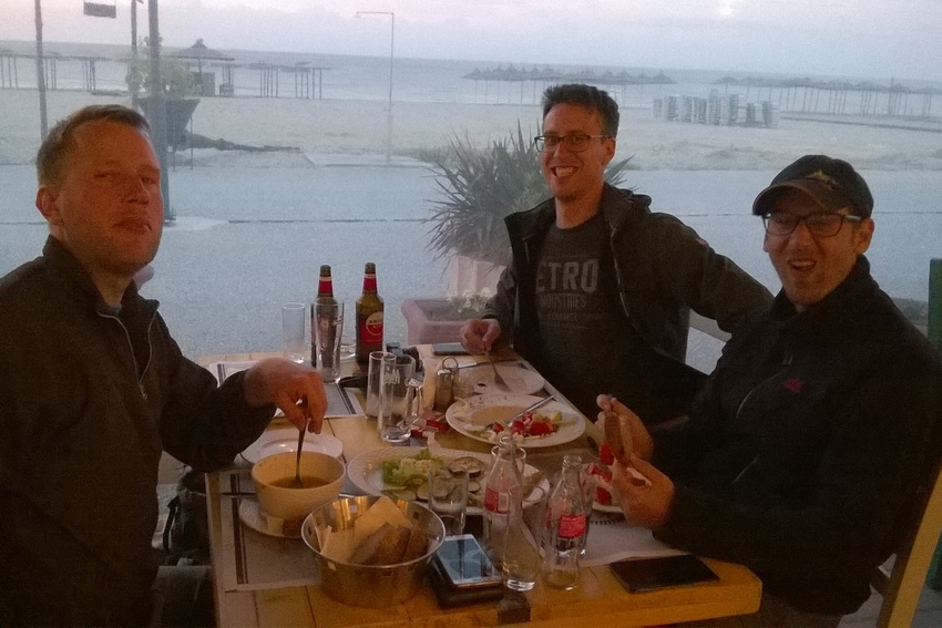 Paul, André und Ines beim Abendessen in Metsovo (Thomas fotografiert).