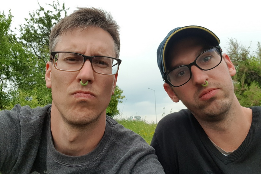 André und Thomas in Regenausrüstung beim Fotografieren unserer ersten Hornotter.