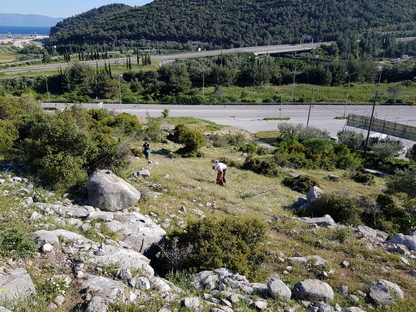 Erster Stopp an der Autobahn auf Höhe von Kavala; ein trockener, buschreicher Hang.