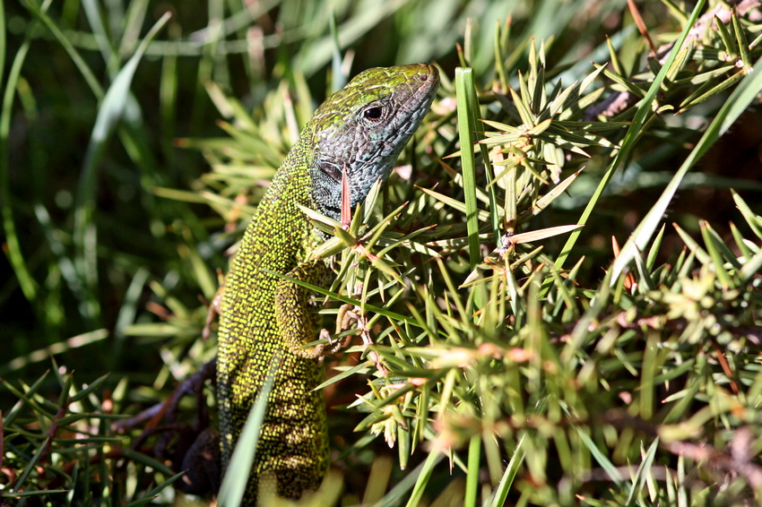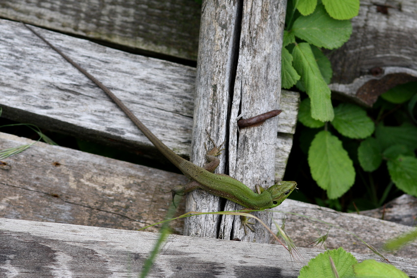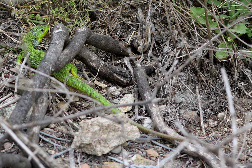 Sich sonnendes Jungtier der Riesen-Smaragdeidechse nahe des Evros, die Art war hier regelmäßig zu finden.