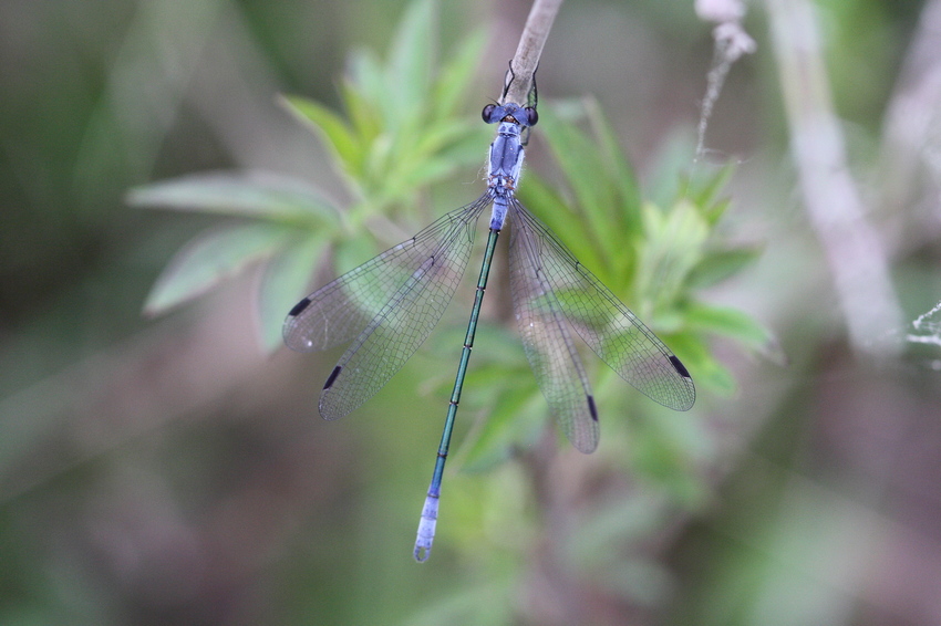 Die Dunkle Binsenjungfer (Lestes macrostigma) bevorzugt brackige, salzhaltige Gewässer und war am Ufer des Evros sehr häufig.