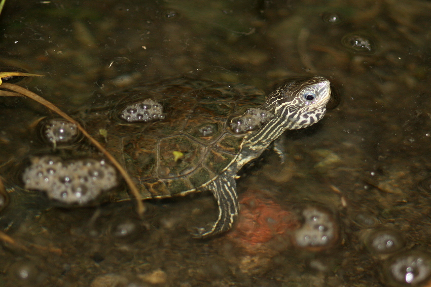 Die Westkaspische Schildkröte (Mauremys rivulata) war entlang des Evros und auch an Stillgewässern regelmäßig zu finden.