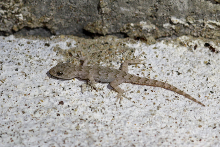 Den Ägäischen Nacktfinger (Mediodactylus kotschyi) fanden wir an der Hauswand unserer Unterkunft.