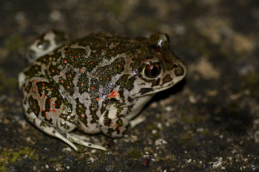 Eine weitere Balkan-Schaufelkröte, die rote Fleckung am Körper ist charakteristisch für diese Art.