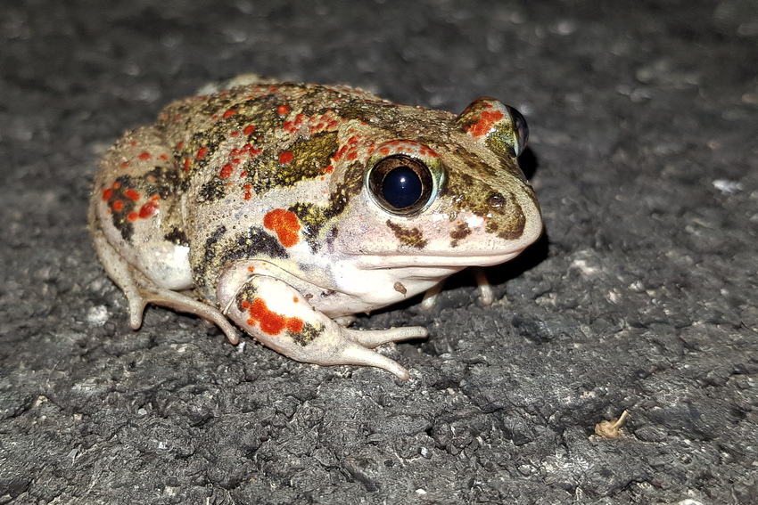 Auch von der Balkan-Schaufelkröte (Pelobates balcanicus) fanden wir am Abend mehrere Exemplare, die sich teils bis auf unsere Terrasse vorwagten.