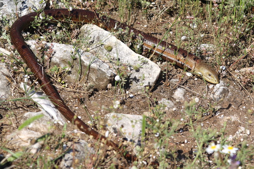 Unser erster reptilischer Fund - ein ausgewachsener Scheltopusik (Pseudopus apodus) an einem südexponierten Hang östlich von Kavala.