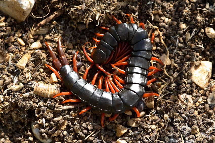 Skolopender (Scolopendra ssp.), von denen es in Griechenland mindestens vier verschiedene Arten gibt, konnten wir sehr häufig unter Steinen finden.