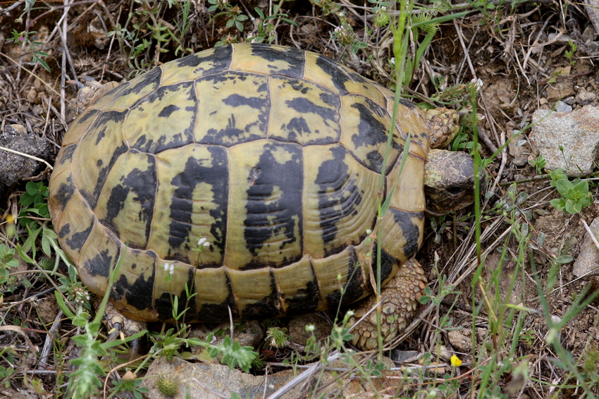Die Maurische Landschildkröte (Testudo graeca) im Habitat bei Loutros.