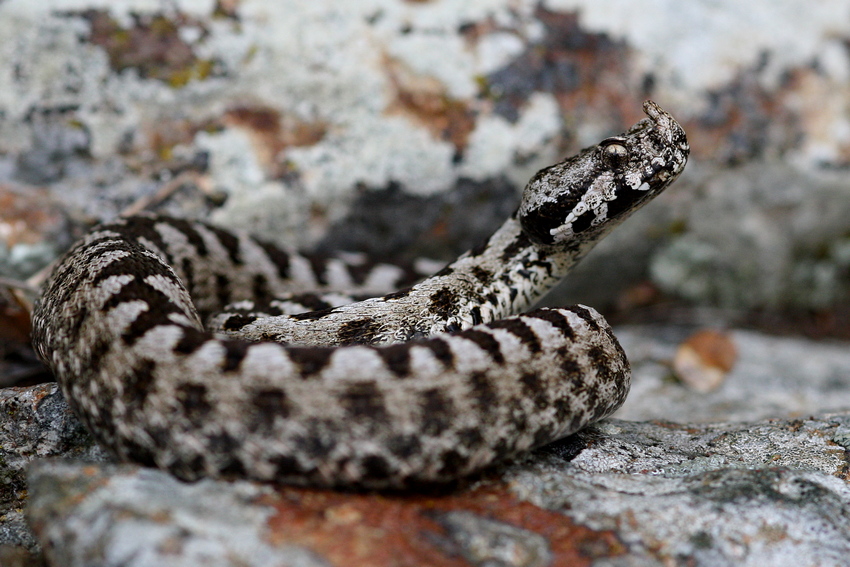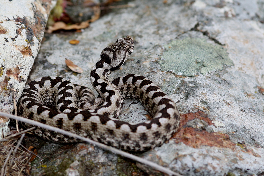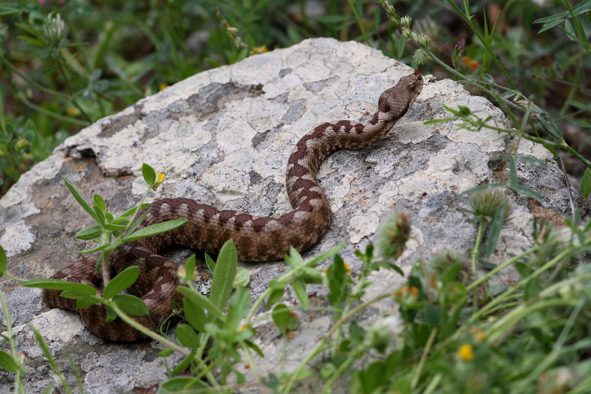 Bei Regen entdeckte Ines unsere erste Viper - eine wunderschöne, subadulte Hornotter (Vipera ammodytes).