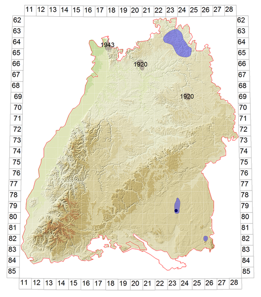 Schematische Verbreitung von G. selenitica in Baden-Württemberg: