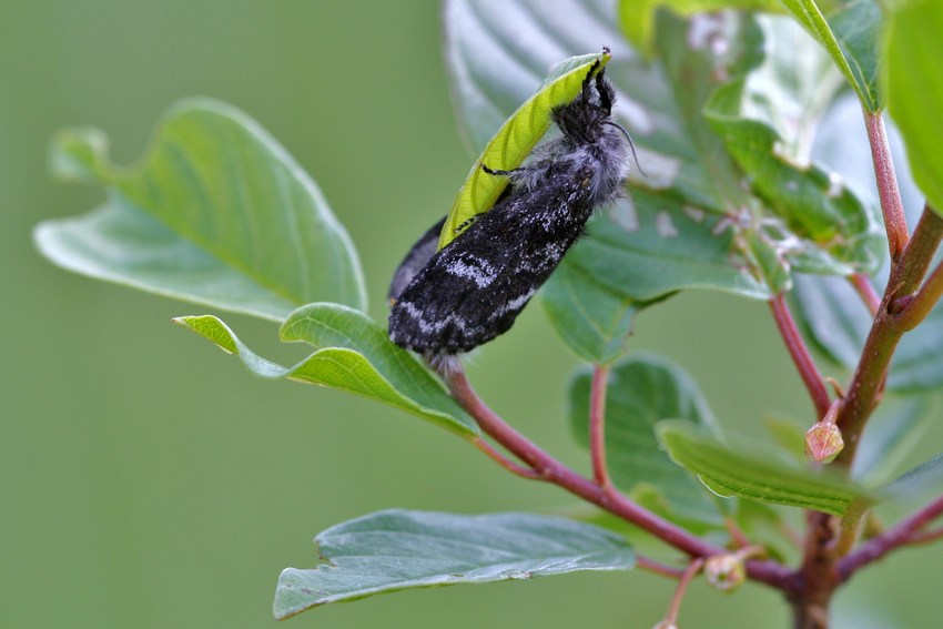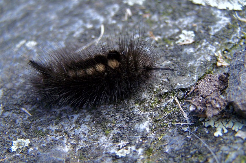 Weibchen des Mondfleck-Bürstenspinners (Gynaephora selenitica) im Hochmoorkomplex des Federseebeckens (NSG Wildes Ried), Juni 2010.