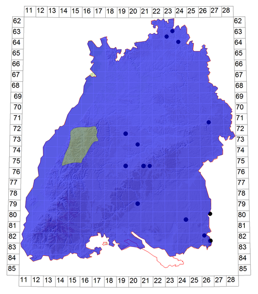 Schematische Verbreitung von H. fuciformis in Baden-Württemberg:
