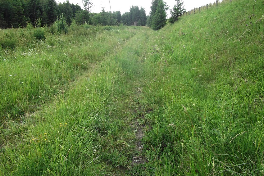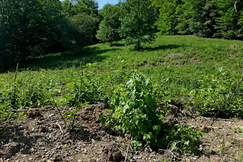 (Larval-)Habitat des Hummelschwärmers im Schönbuch (NSG Schaichtal), eine regelmäßig mit dem Forstmulcher bearbeitete Stromleitungstrasse.