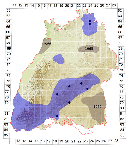 Schematische Verbreitung von H. tityus in Baden-Württemberg: