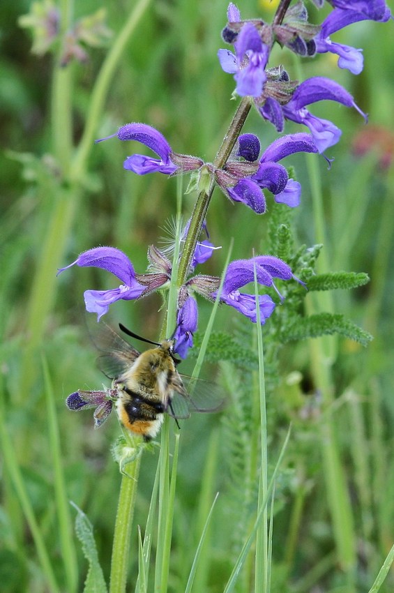 Nektarsaugender Skabiosenschwärmer (Hemaris tityus) auf einer Magerwiese auf der Hegaualb (Welschingen), Mai 2011.