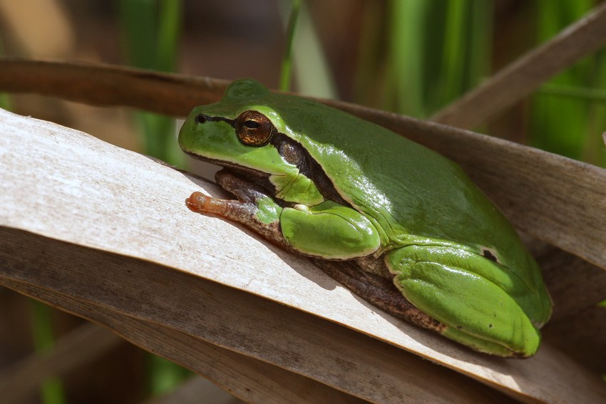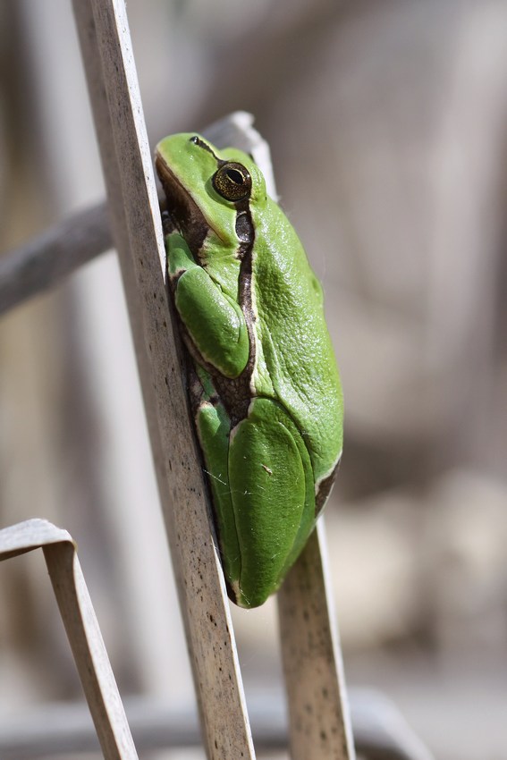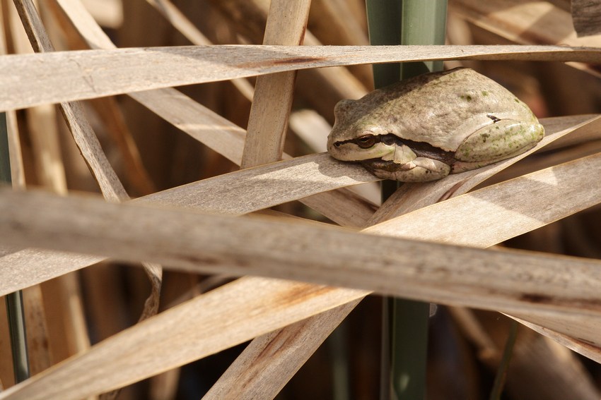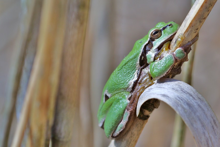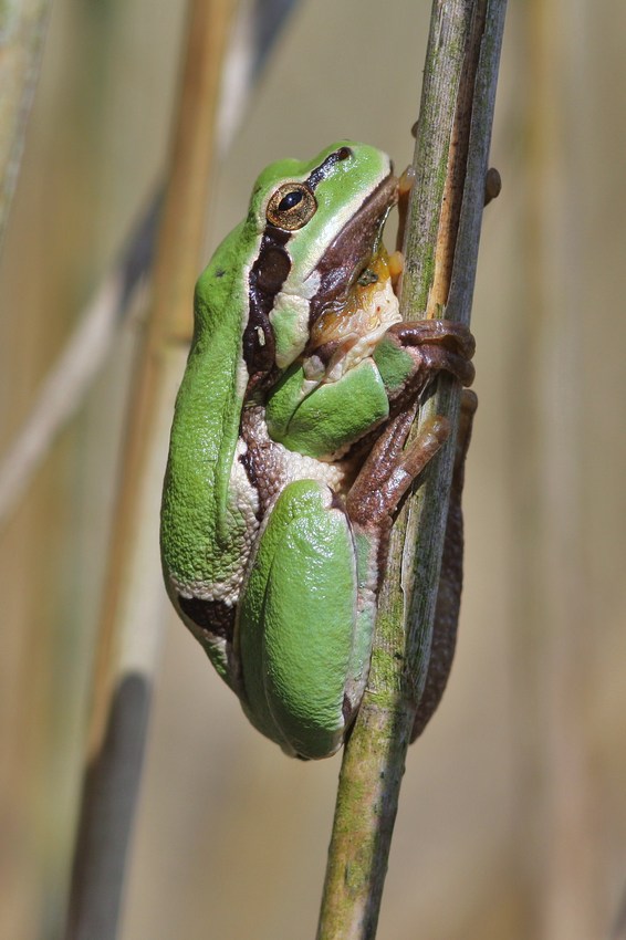 Sich im Schilf sonnender H. arborea in den Oberen Gäuen (Ammerbuch-Entringen), Mai 2012.
