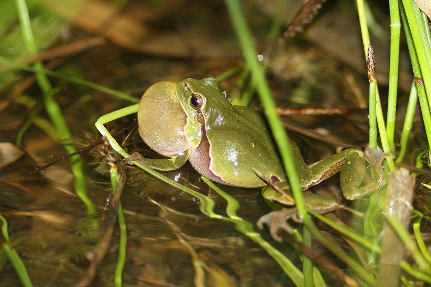 Weiterer Laubfrosch an einem Gewässer in den Oberen Gäuen (Ammerbuch-Entringen), Mai 2012.