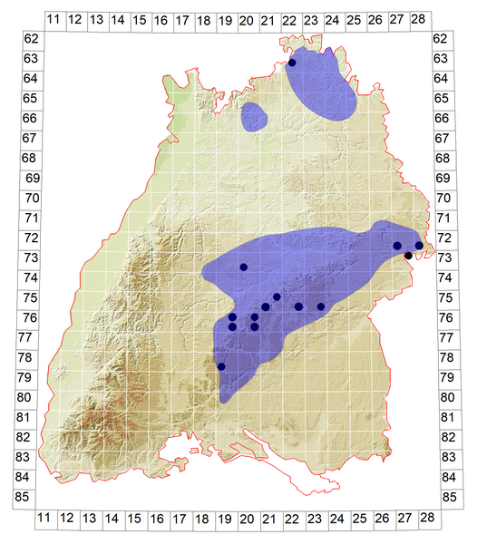 Schematische Verbreitung von I. kraussii in Baden-Württemberg:
