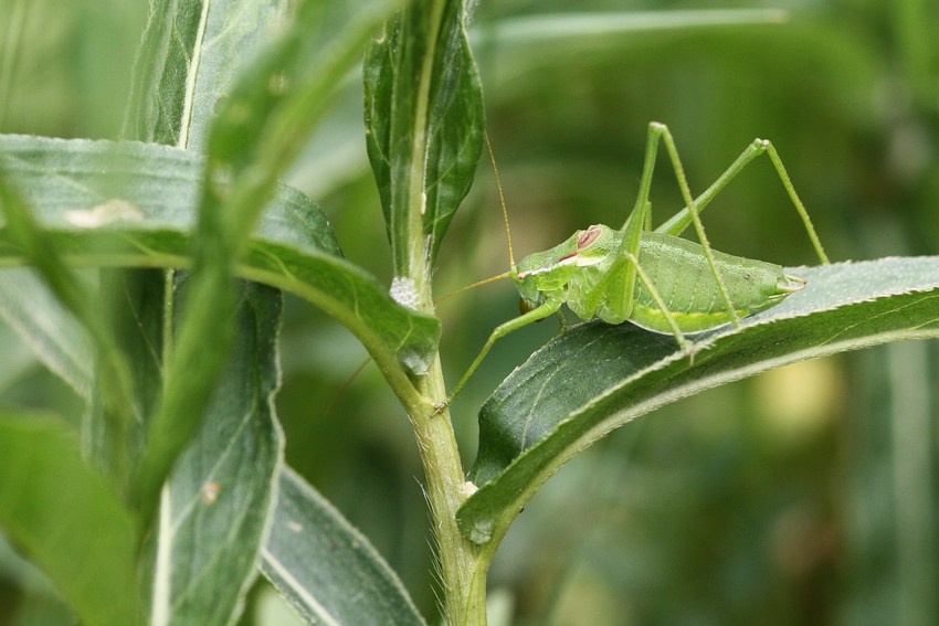 Weibchen der Plumpschrecke (Isophya kraussii) an einem Waldrand auf der Schwäbischen Alb (Trochtelfingen), Juli 2009.
