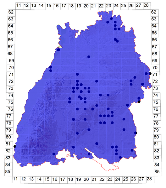 Schematische Verbreitung von I. lathonia in Baden-Württemberg: