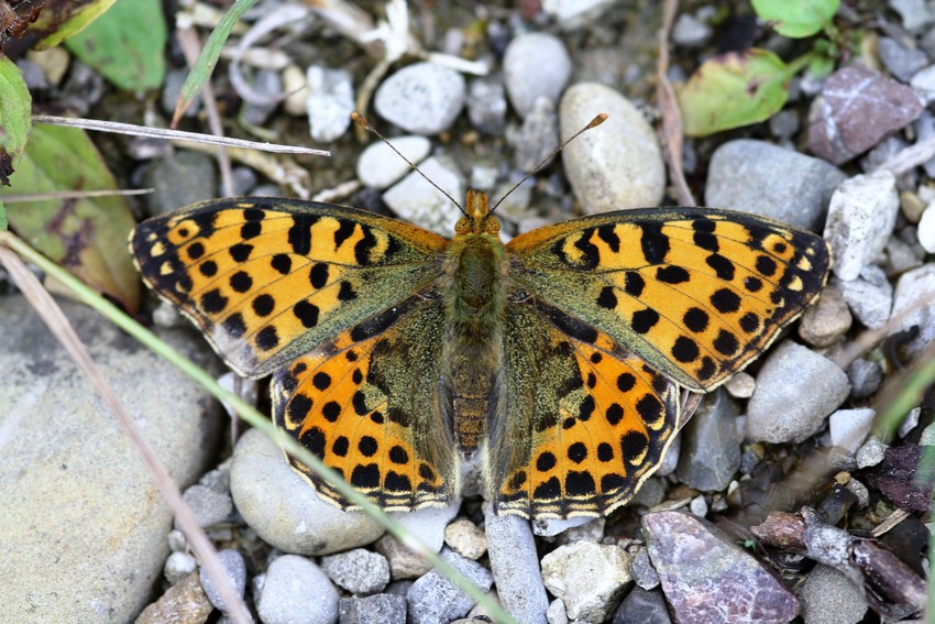 Kleiner Perlmutterfalter (Issoria lathonia) am kiesigen Ufer der Iller in Oberschwaben (Buxheim), August 2010.
