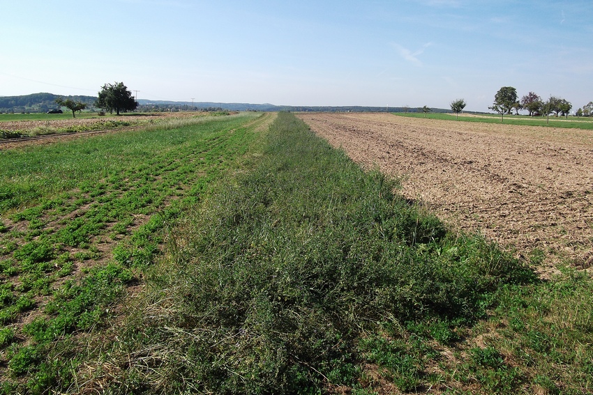 Larvalhabitat von I. lathonia in den Oberen Gäuen (Aidlingen); Ackerrandstreifen mit gut besonnten Viola-Beständen.