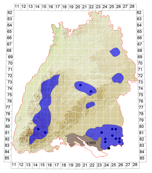 Schematische Verbreitung von L. dubia in Baden-Württemberg: