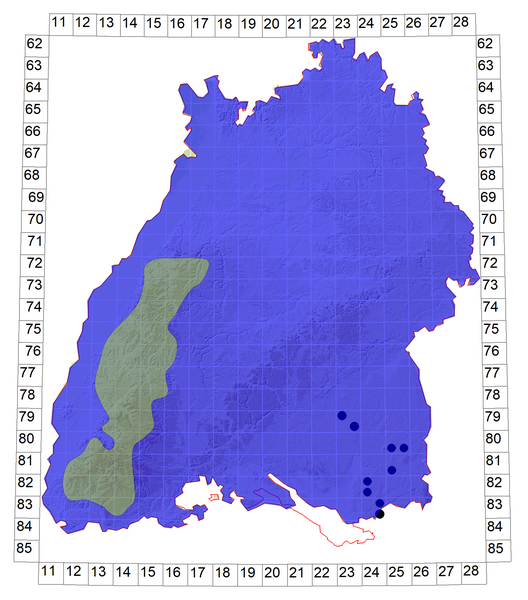 Schematische Verbreitung von L. pectoralis in Baden-Württemberg: