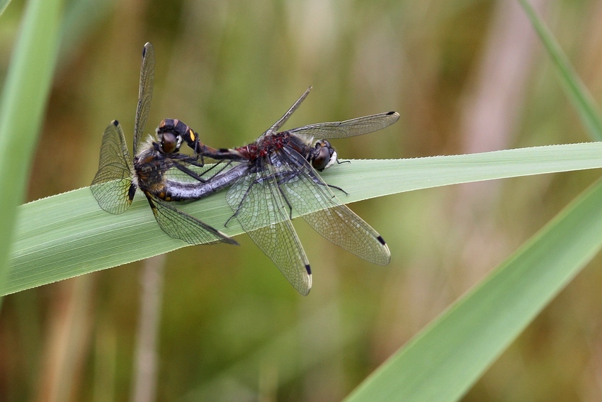 Kopula der Großen Moosjungfer an einem Moorgewässer im Allgäu (Immenried), Juni 2016.