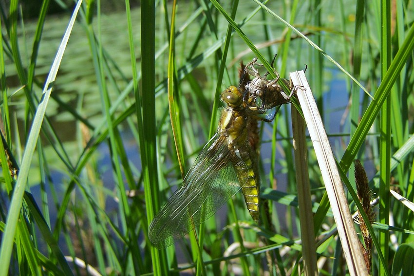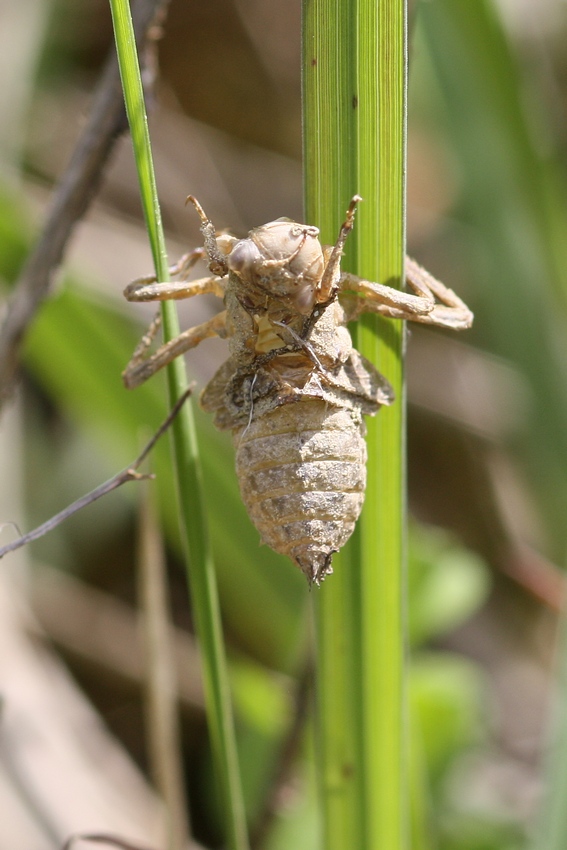 Exuvie des Plattbauchs an einem temporären Flachgewässer in Oberschwaben (Laupheim), Mai 2015.