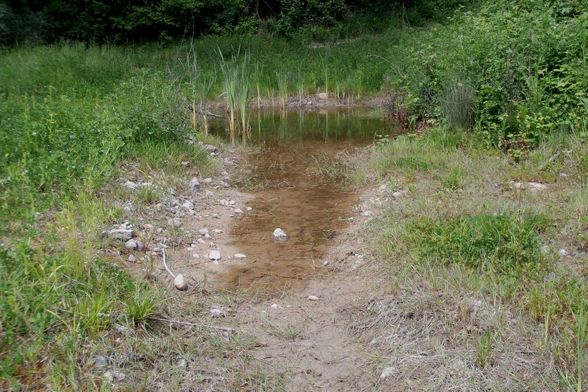 Neu angelegtes Gewässer im Albvorland (Dettenhausen); bereits ein Jahr nach Anlage schlüpfen zahlreiche L. depressa.