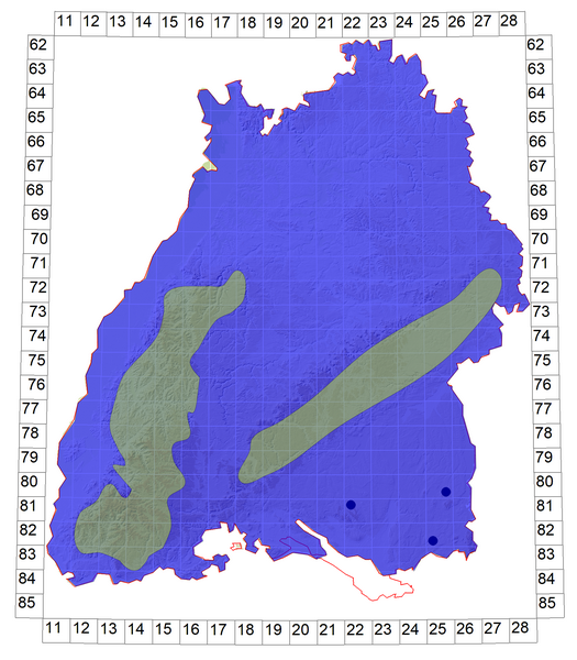 Schematische Verbreitung von L. fulva in Baden-Württemberg: