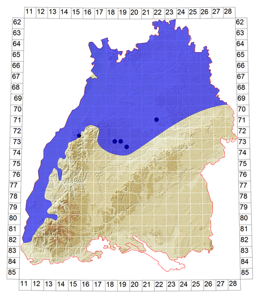 Schematische Verbreitung von L. dispar in Baden-Württemberg: