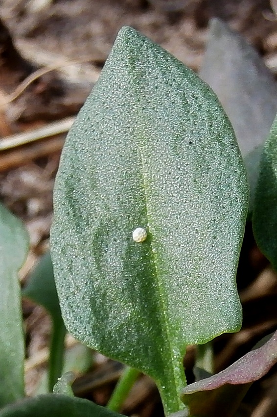 Charakteristisches Ei des Kleinen Feuerfalters mit "Golfball-Struktur" im Albvorland (Schönaich), Oktober 2015.