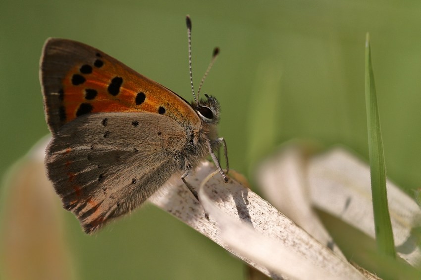 Flügeloberseite von L. phlaeas auf einem Magerrasen im Baar-Wutach-Gebiet (Untermettingen), September 2010.