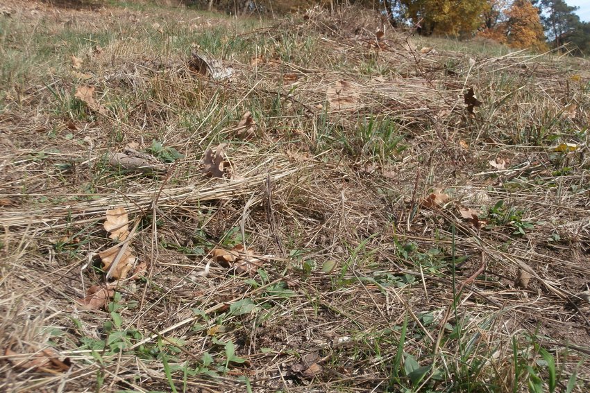 Larvalhabitat des Kleinen Feuerfalters, schüttere Bodenstellen mit massenhaftem Vorkommen des Kleinen Sauerampfers in einem beweideten und nachgemulchten Halbtrockenrasen im Albvorland (Schönaich).