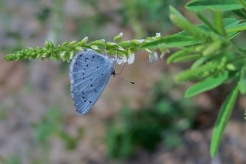 Der Faulbaumbläuling (Celastrina argiolus) ist in gehölzeichen, halboffenen Lebensräumen noch weit verbreitet.
