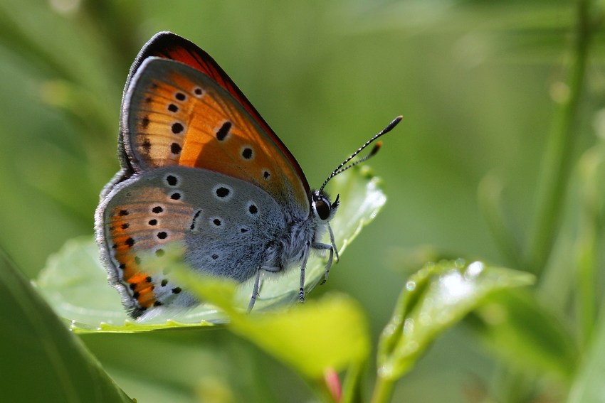 Der Blauschillernde Feuerfalter (Lycaena helle) kommt nur an einer einzigen Stelle in Baden-Württemberg vor und gilt deshalb als vom Aussterben bedroht.