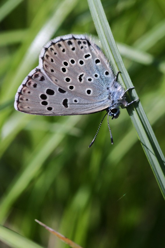 Auf der Schwäbischen Alb noch regelmäßig auf einigen Magerrasen zu finden und trotzdem stark gefährdet, der Schwarzfleckige Ameisenbläuling (Phengaris arion).