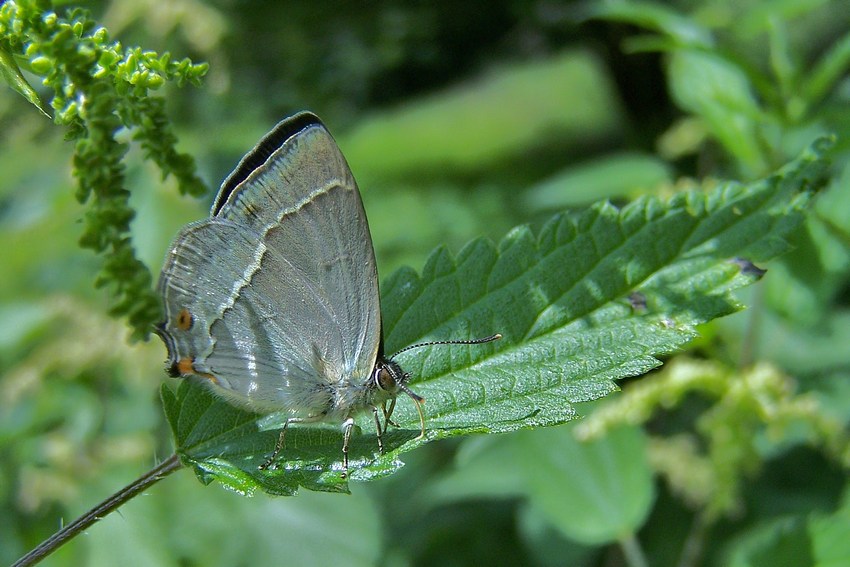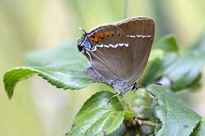 Der Braune Eichen-Zipfelfalter (Satyrium ilicis) gehört als Lichtwaldart zu den am stärksten gefährdeten Bläulingsarten.