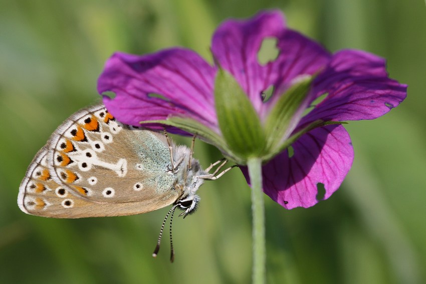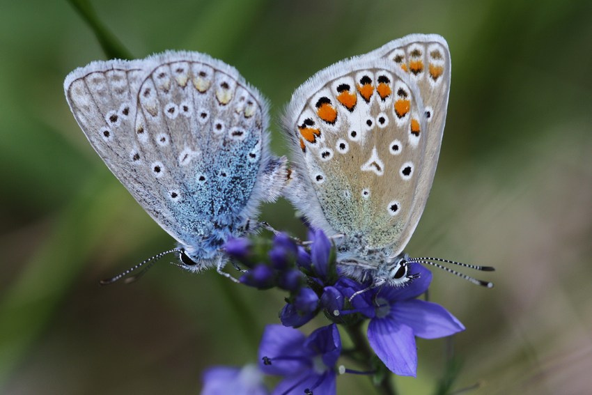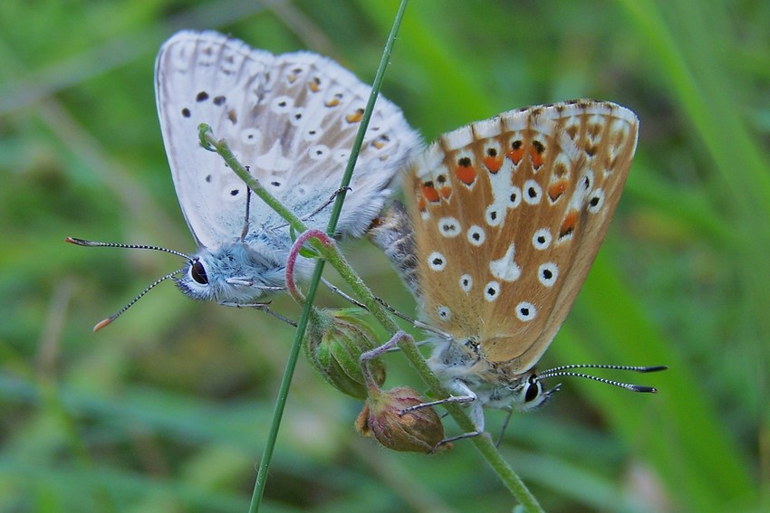 Der Geißklee-Bläuling (Plebejus argus) kommt einerseits auf Magerrasen, andererseits aber auch in verheideten Hochmooren vor.