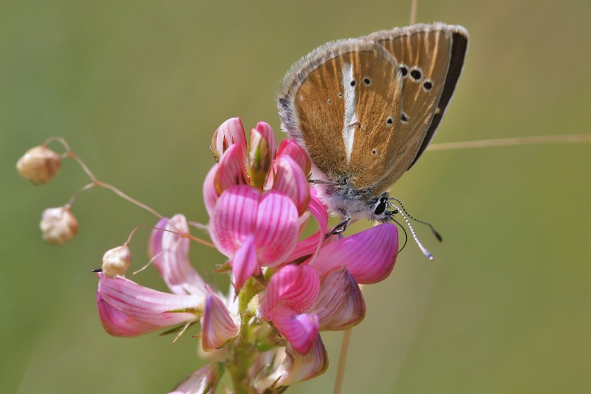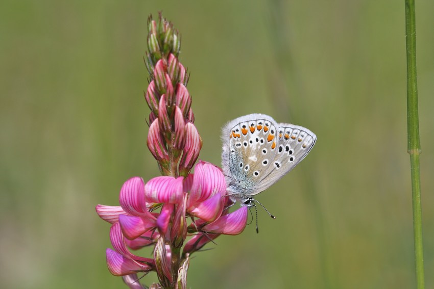 Der Esparsetten-Bläuling (Polyommatus thersites) ist nur regional auf an Esparsetten reichen Magerrasen anzutreffen.