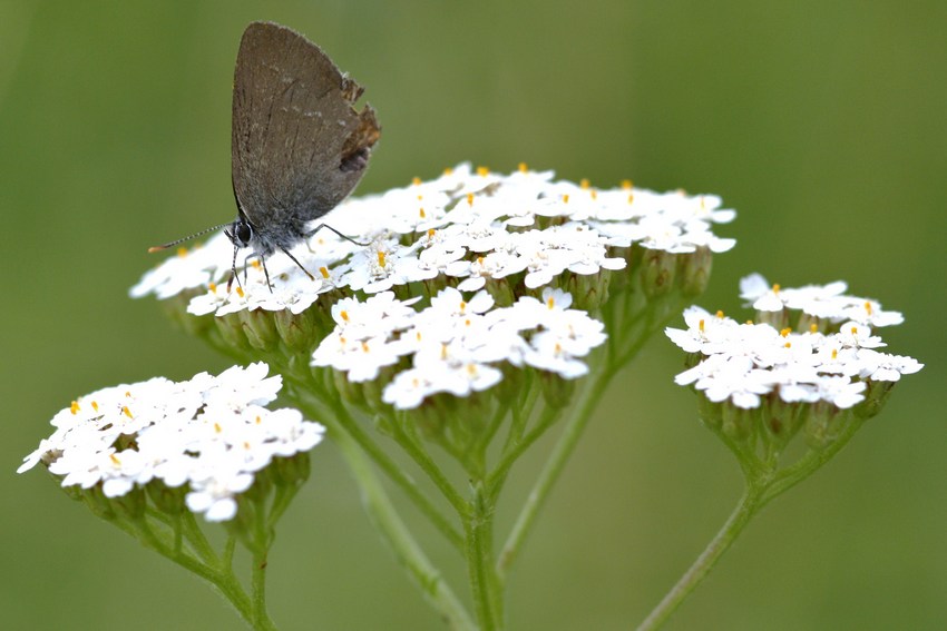 Der Kleine Schlehen-Zipfelfalter (Satyrium acaciae) ist auf schlehenreichen Magerrasen zu finden. Typisch ist dieser Nachweis auf Schafgarbe, an der die Falter gerne saugen.