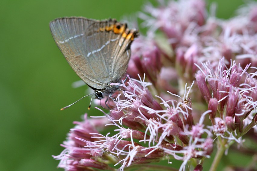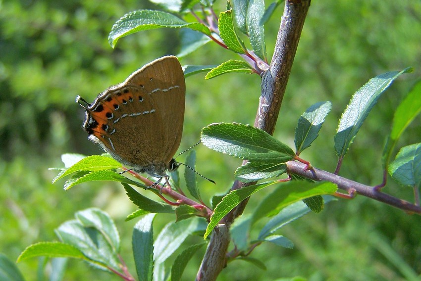 Einer unserer häufigsten Zipfelfalter ist der Schlehen-Zipfelfalter (Satyrium pruni). In gebüschreichem Gelände mit Schlehenhecken ist die Art regelmäßig präsent.