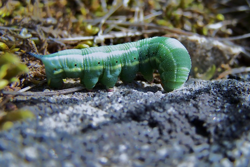 Raupe des Taubenschwänzchens aus Südfrankreich, August 2007.