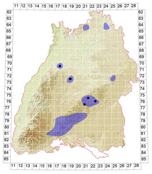 Schematische Verbreitung von P. rebeli in Baden-Württemberg: