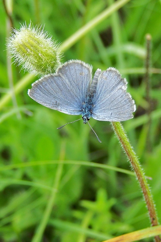 Flügeloberseite des Kreuzeinzian-Ameisenbläulings auf einem Kalk-Magerrasen in den Oberen Gäuen (Grafenau-Dätzingen), Juni 2009.