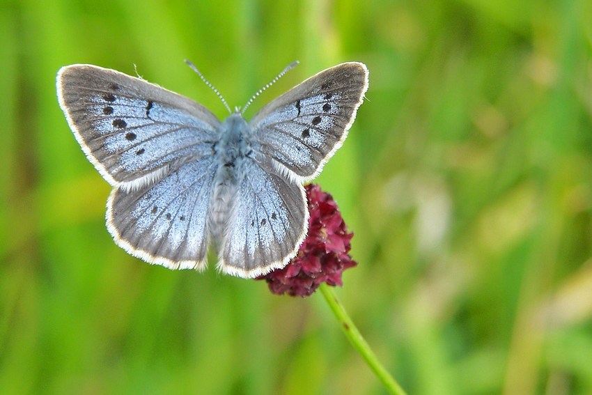 Flügeloberseite des Hellen Wiesenknopf-Ameisenbläuling im Albvorland (Weil im Schönbuch), Juli 2009.