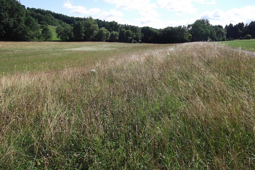 Weiteres Habitat des Hellen Wiesenknopf-Ameisenbläulings im Albvorland (Dettenhausen), eine extensiv genutzte Frischwiese.